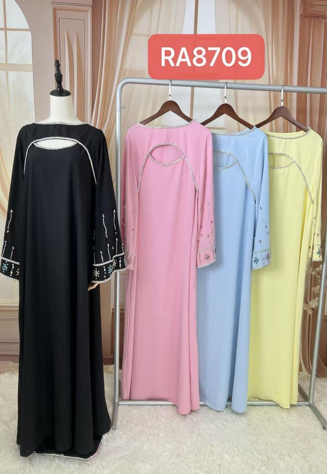 Stylish Open Abaya made with made using premium-quality polyester material.